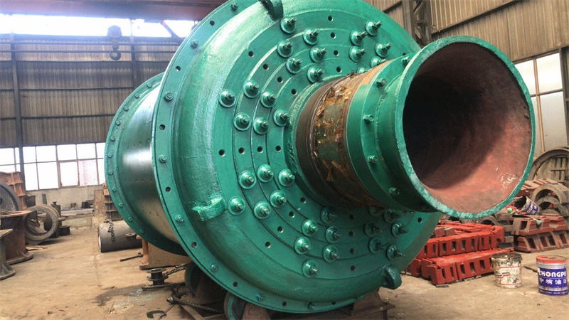 溢流型球磨機筒體用厚度15-36mm的鋼板焊接而成,在筒體的兩端焊有鑄鋼制造的法蘭盤(pán),用螺栓將端蓋2和3與法蘭盤(pán)連接在一起,二者須精密加工和配合,因為承載磨礦機質(zhì)量的中空軸頸焊在端蓋上。在筒體上開(kāi)有1-2個(gè)人孔,供檢修和更換襯板用。筒體和端蓋內部敷設有襯板5。端蓋上的中空軸頸支承在主軸承4上。主軸承常用的是滑動(dòng)軸承,其直徑很大,但長(cháng)度很短。軸瓦用巴氏合金澆鑄,與一般滑動(dòng)軸承不同之處在于僅僅下半部有軸瓦。整個(gè)軸承除軸瓦用巴氏金澆鑄外,其余用鑄鐵制成。由于球磨機的跨度和載荷很大,將發(fā)生一定程度的撓曲,而且制造和裝配的誤差也難以保證準確的同心度,因此主軸承制成自動(dòng)調心滑動(dòng)軸承,為防止軸瓦轉位過(guò)大而從軸承座中滑出,在軸承座與軸瓦的球面***放一圓柱銷(xiāo)釘。